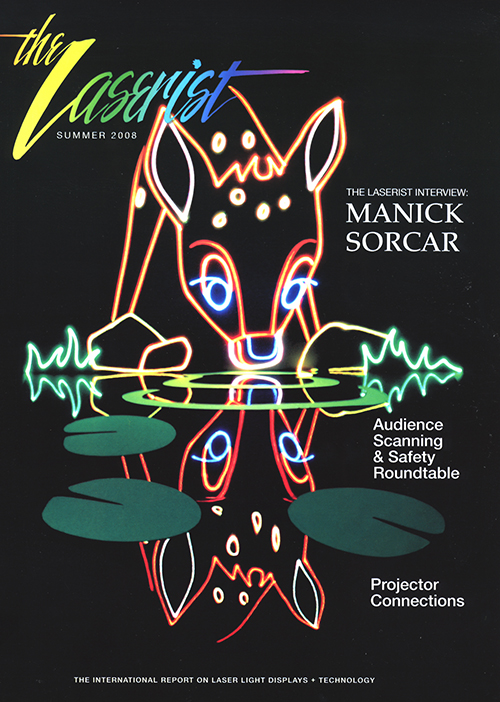 Manick Sorcar's laser art, Reflection, made it to the cover of the The Laserist (Summer 2008), the official magazine of the International Laser Display Association (ILDA), after he received the 'Artistic Award' by winning the First Place in international competition in the laser photography category. The magazine also published an interview with him.